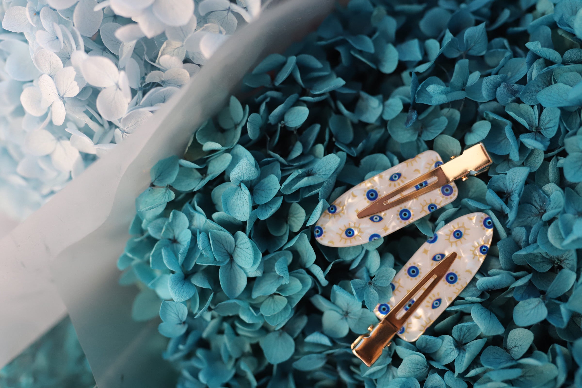 Sleek, modern, and as always protective by design. Our Creaseless Evil Eye Blowout Hair Clips are crafted from durable acrylic and finished with a touch of gold plating for a polished look. Designed to hold your hair securely without leaving dents or marks, they’re perfect for styling, setting, or touch-ups on the go.