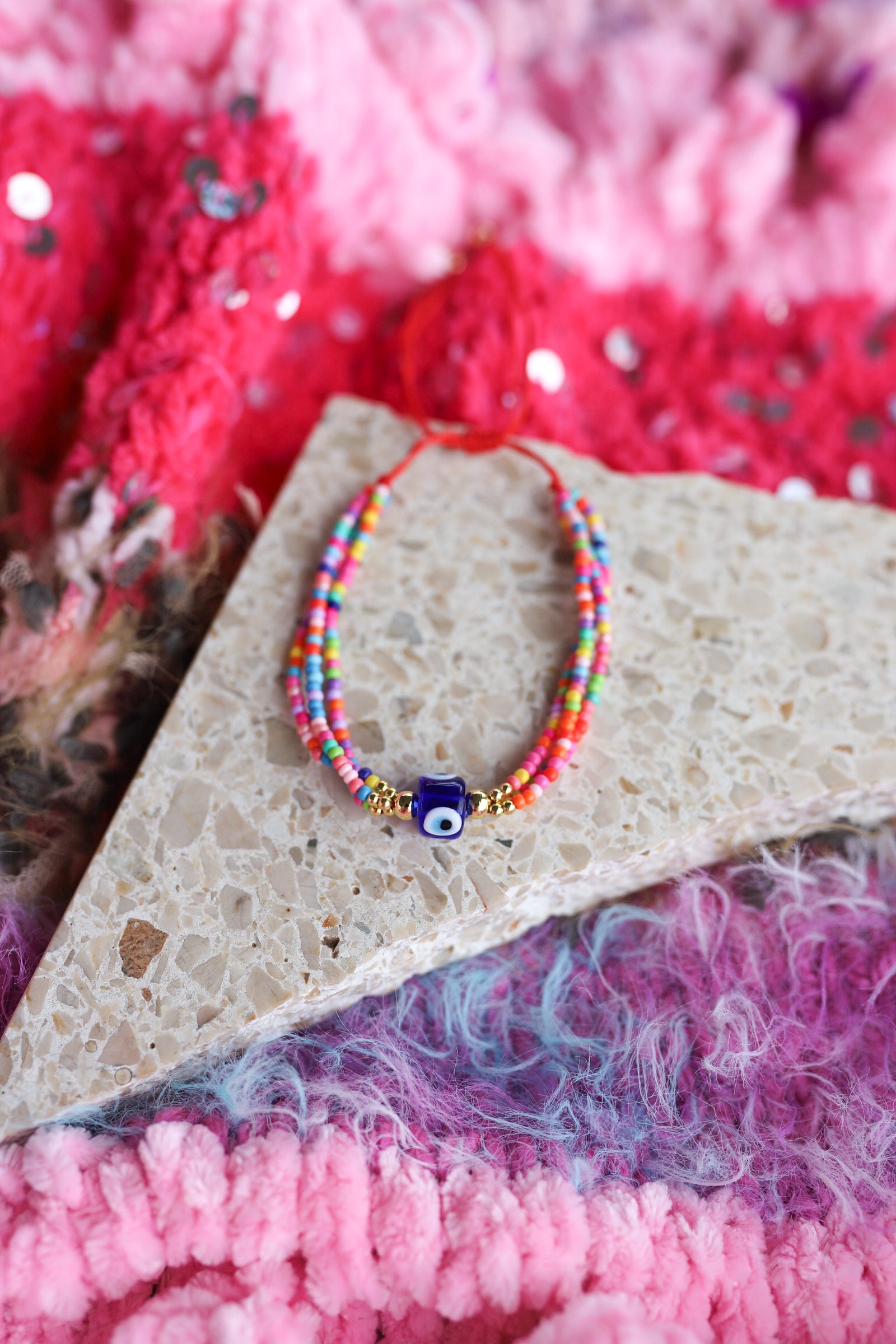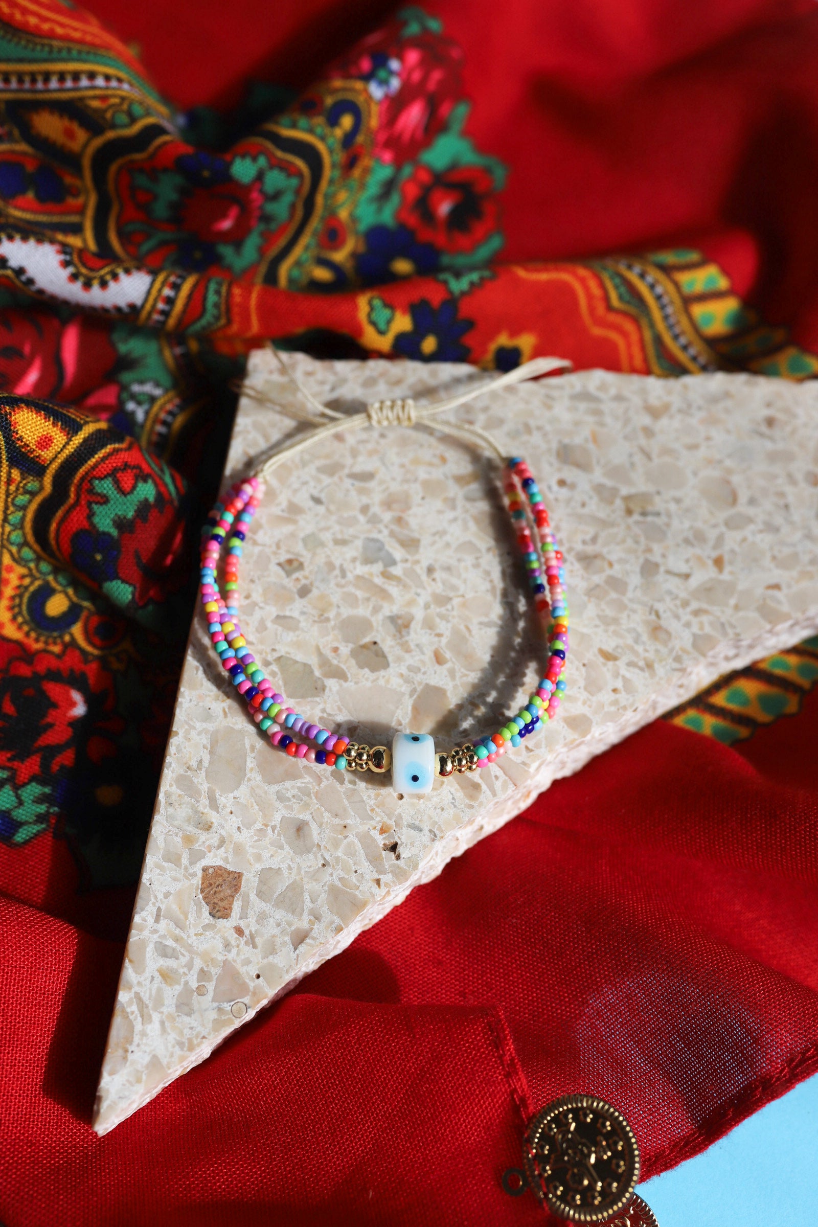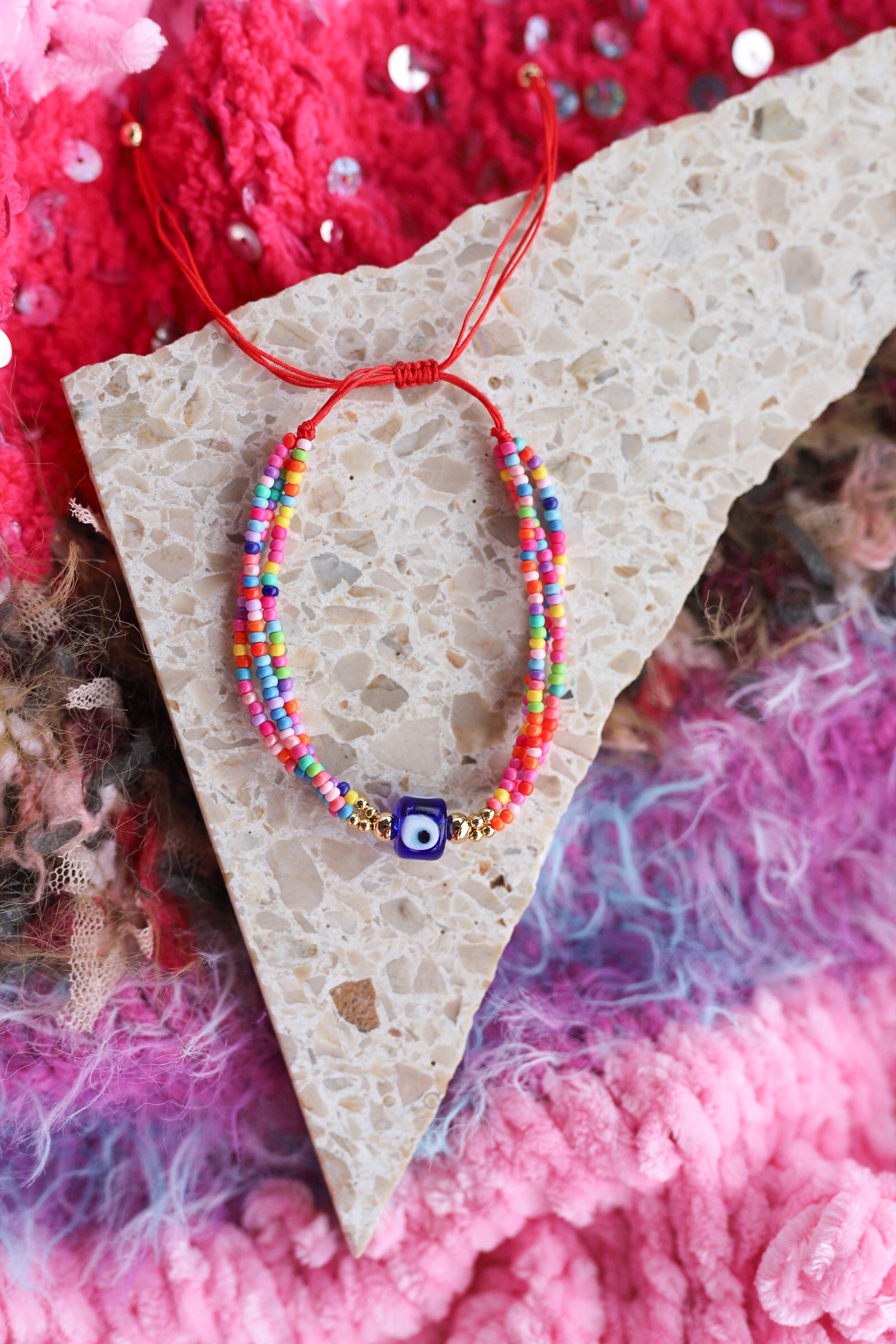 • Red drawstring on dark blue evil eye & beige draw string on white evil eye.