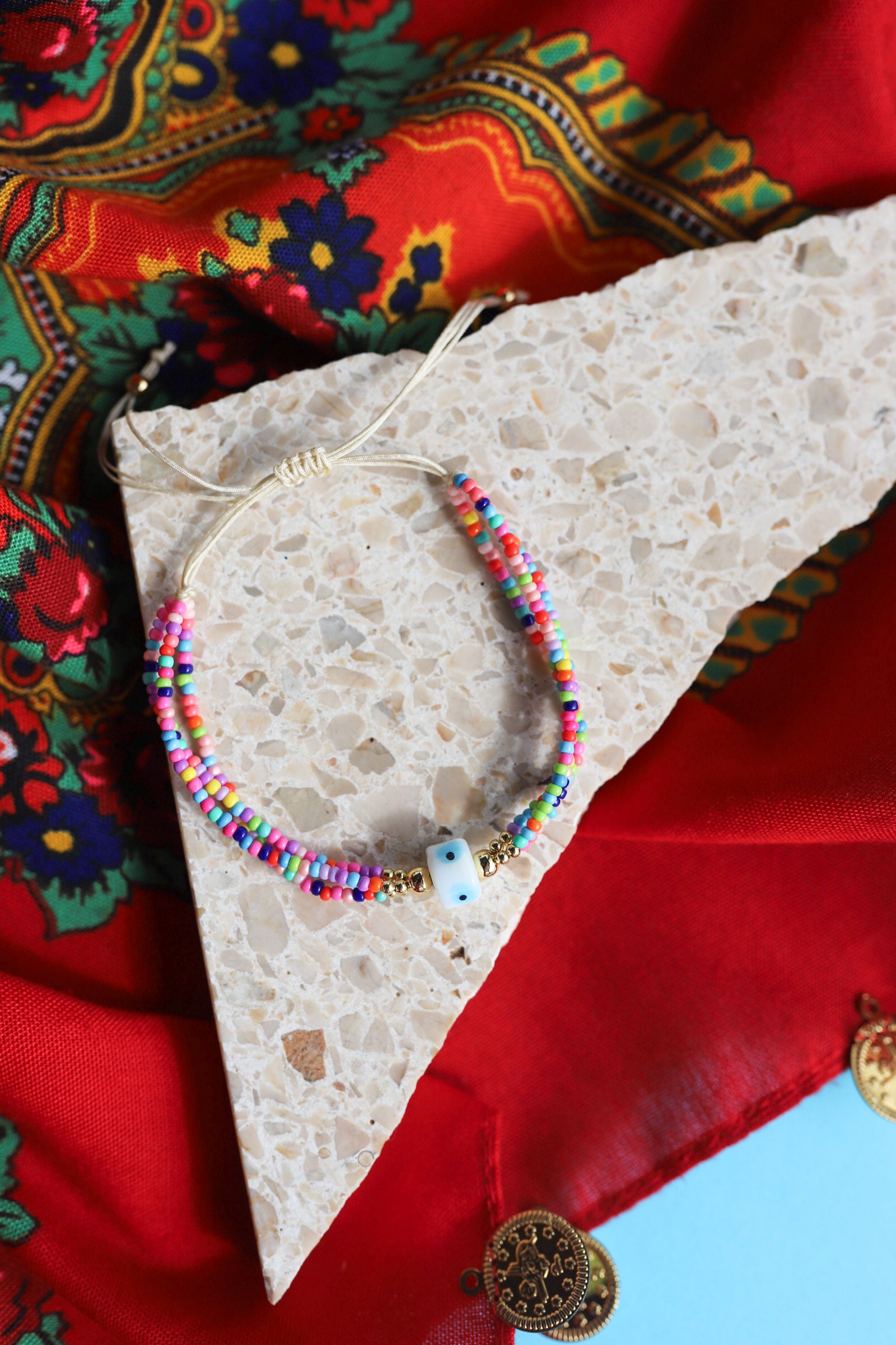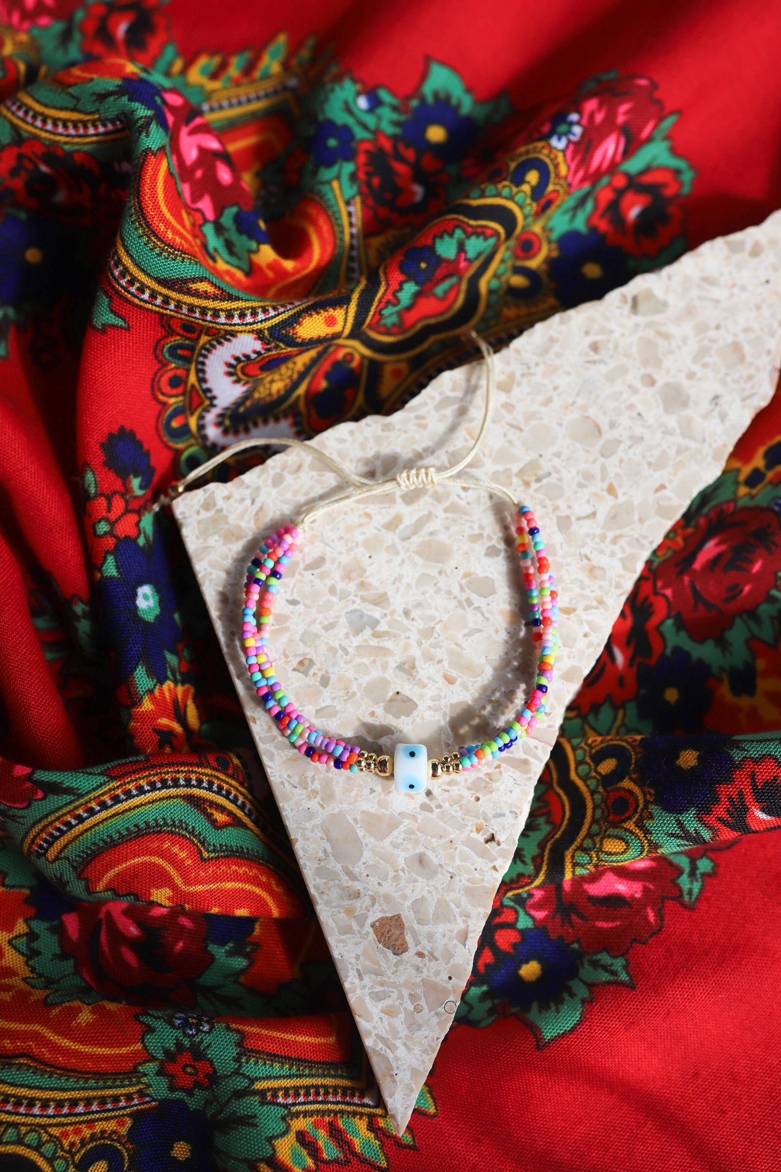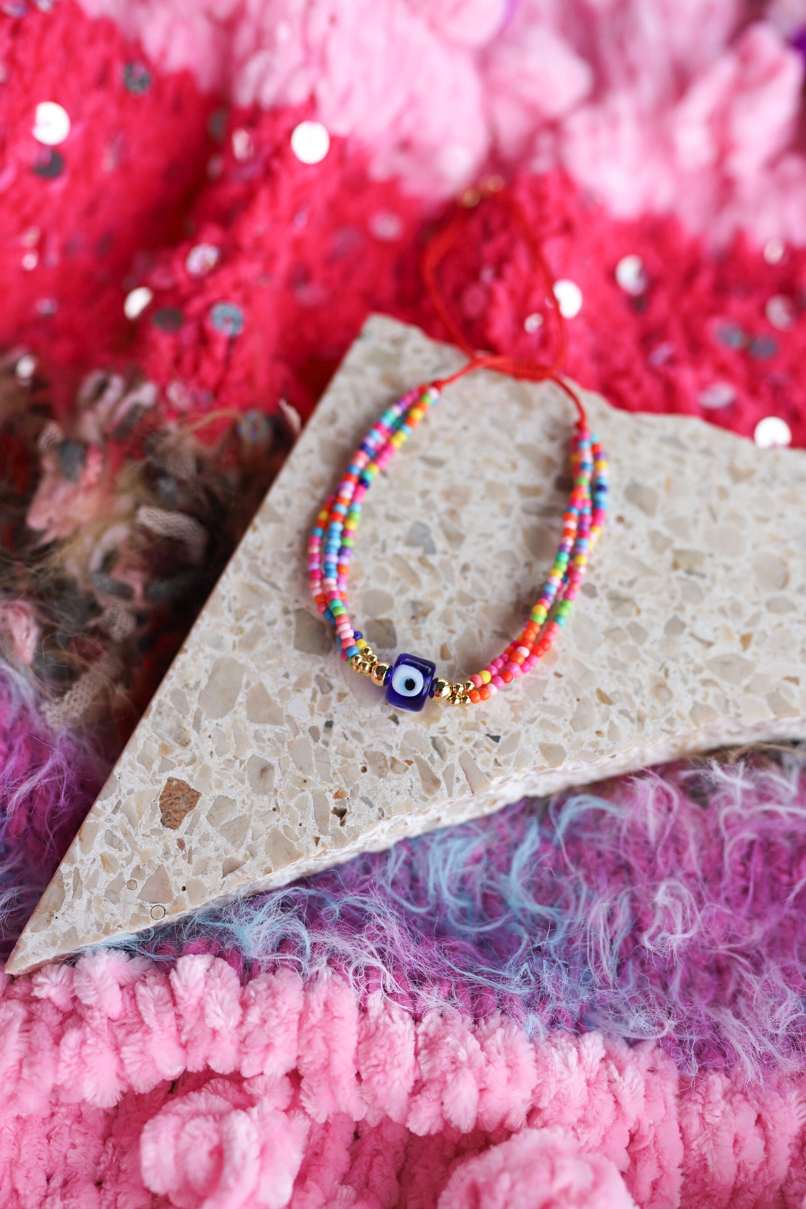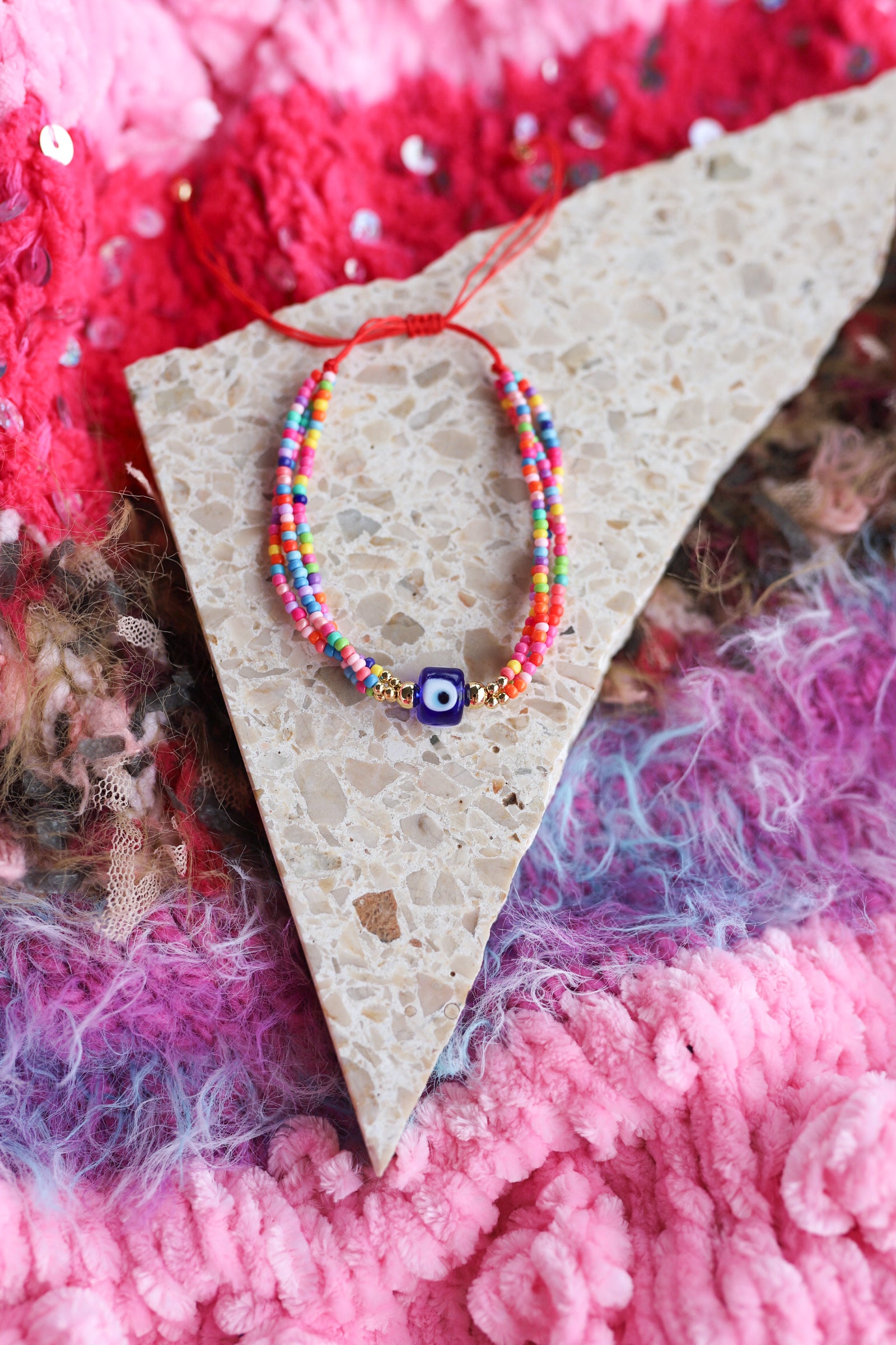 • Red drawstring on dark blue evil eye & beige draw string on white evil eye.