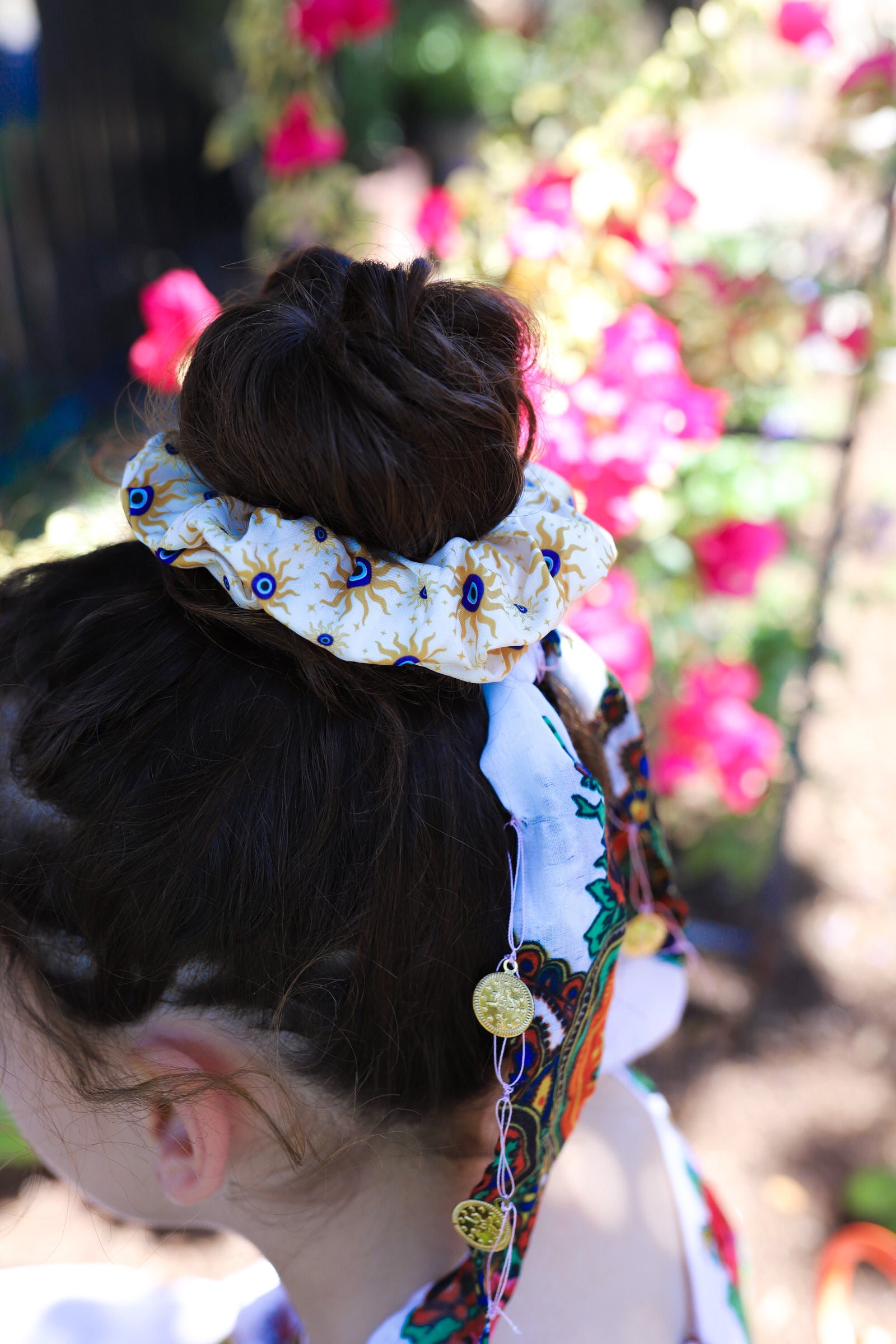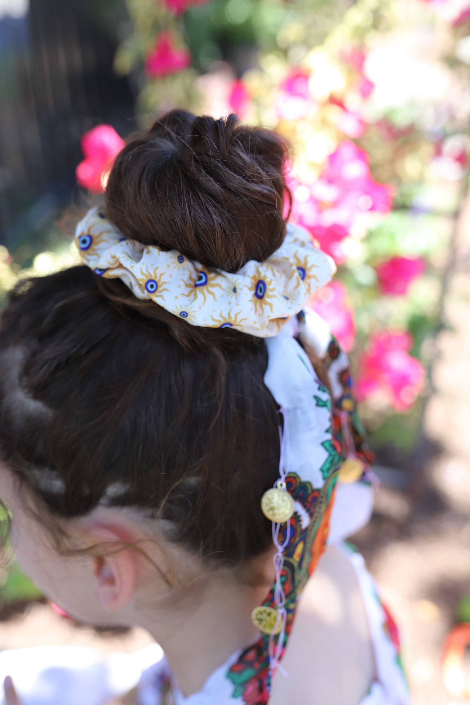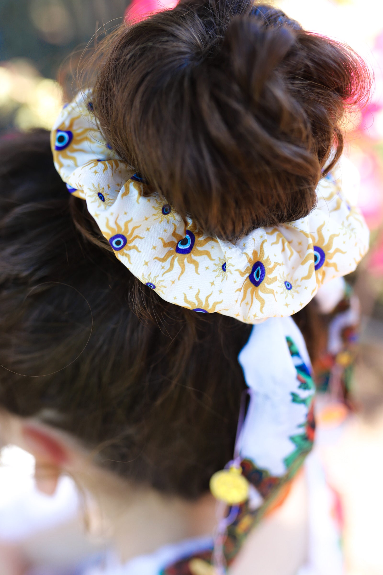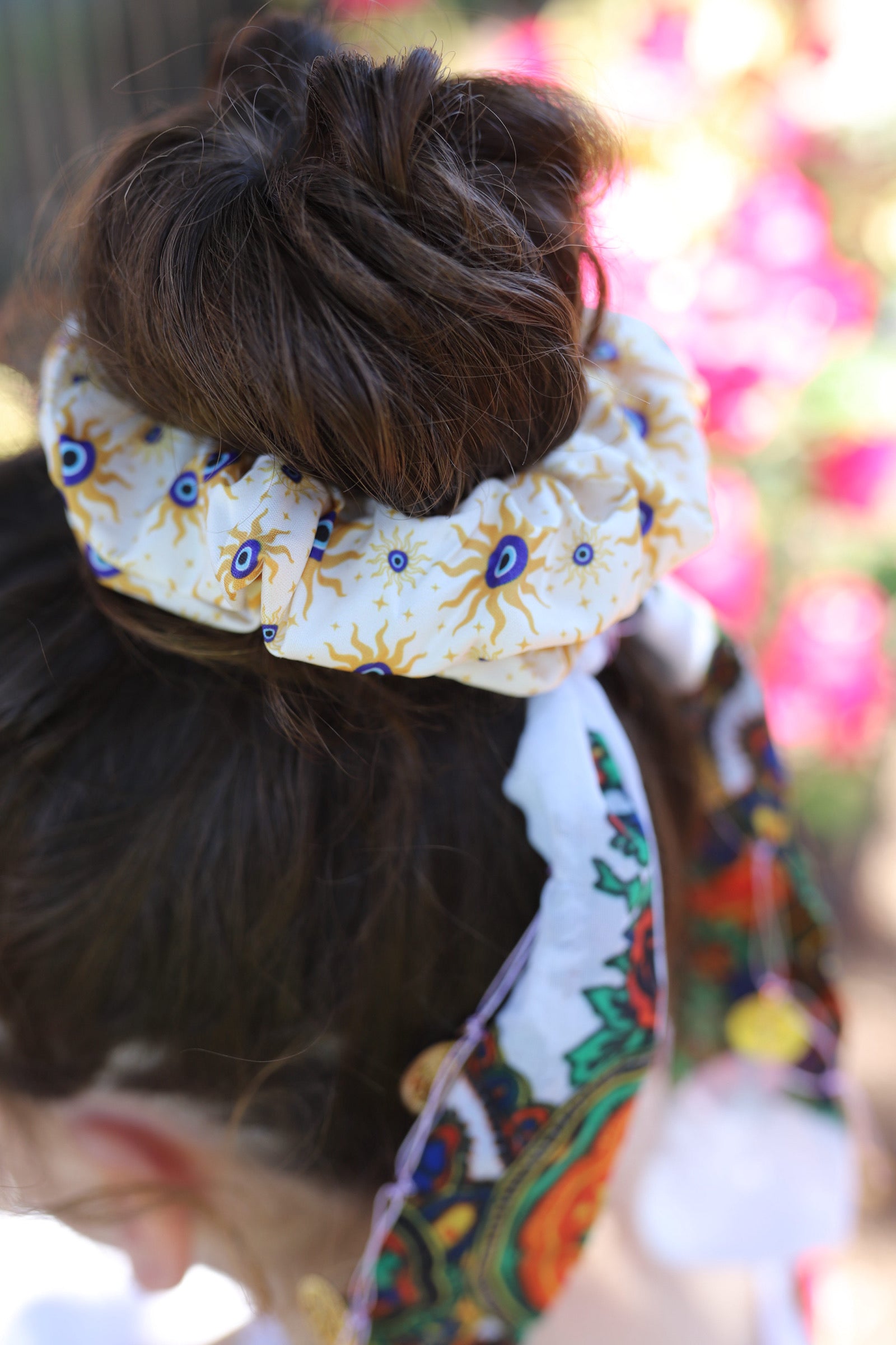 Add a touch of protection to your everyday look with our Evil Eye Satin Scrunchies. Designed to ward off negative energy, each scrunchie is crafted from soft satin that’s gentle on your hair, reducing breakage, frizz, and creases.