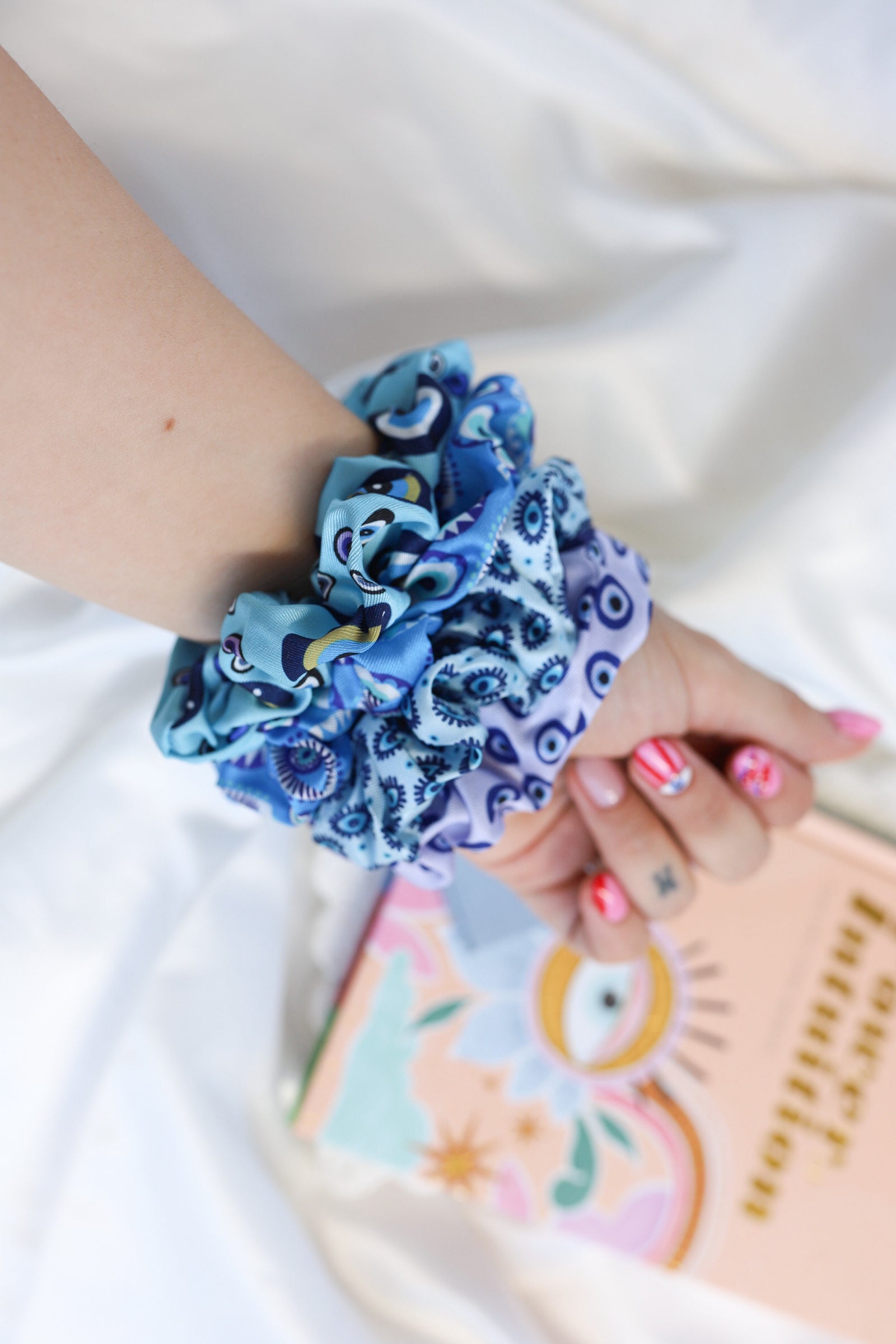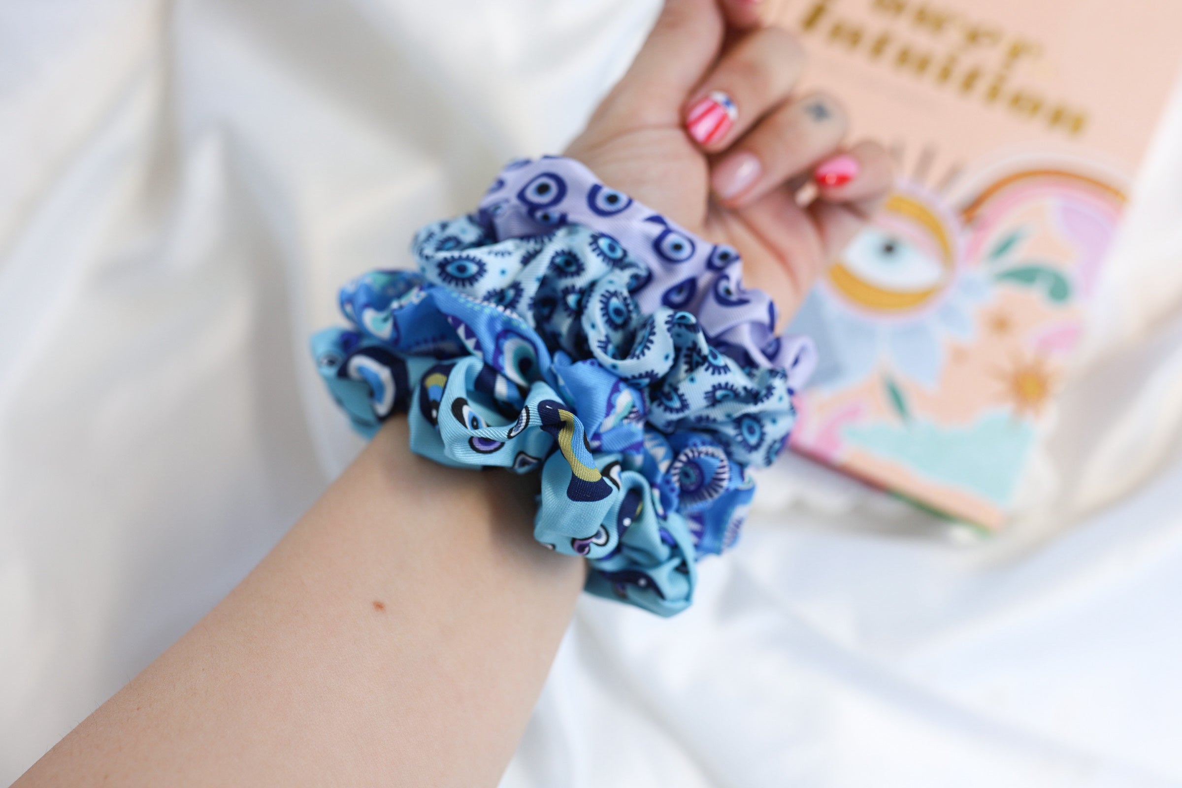 Perfect for daily wear or as a thoughtful gift, our Evil Eye Satin Scrunchies are a stylish reminder that protection can be both powerful and graceful.